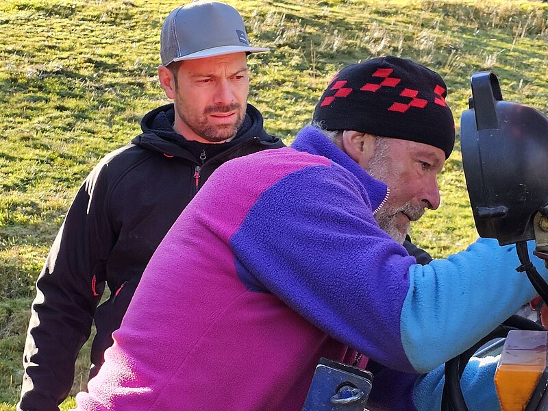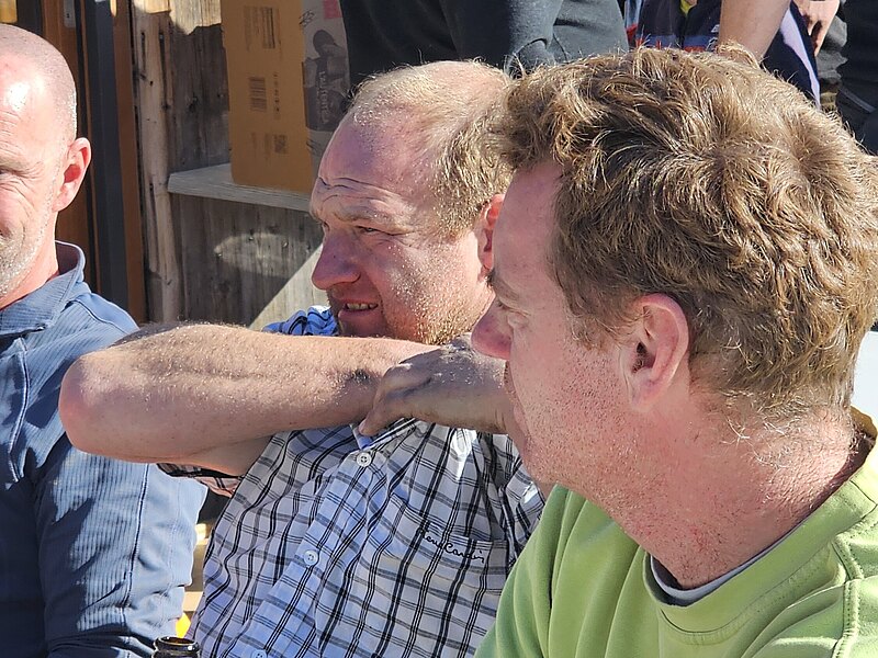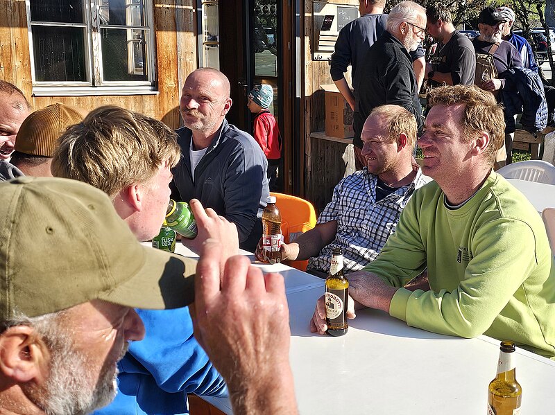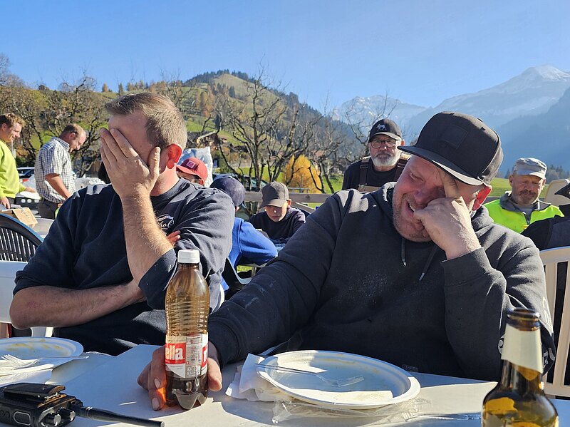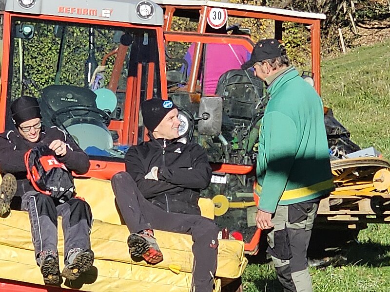 Gredi uechi, über d Raaghügli ii, am Skilift-Trassee nachi, si ga suechä u de o di miischtä gfundä, di vielä Hälfer wo vor underä Sektion bis uechi zum Spitz gwärchet hi. Niniii, si higä sig de nüt la ablenkä vo denä Froui wo da um si gschwirrt si u di flottä Gsichteni für "Aeschi- üses Dorf" igfangä hi :-) Hiä ä paar Idrück vo denä wärchigä Skilift Hälfer- ganz ä flotti Gruppä.