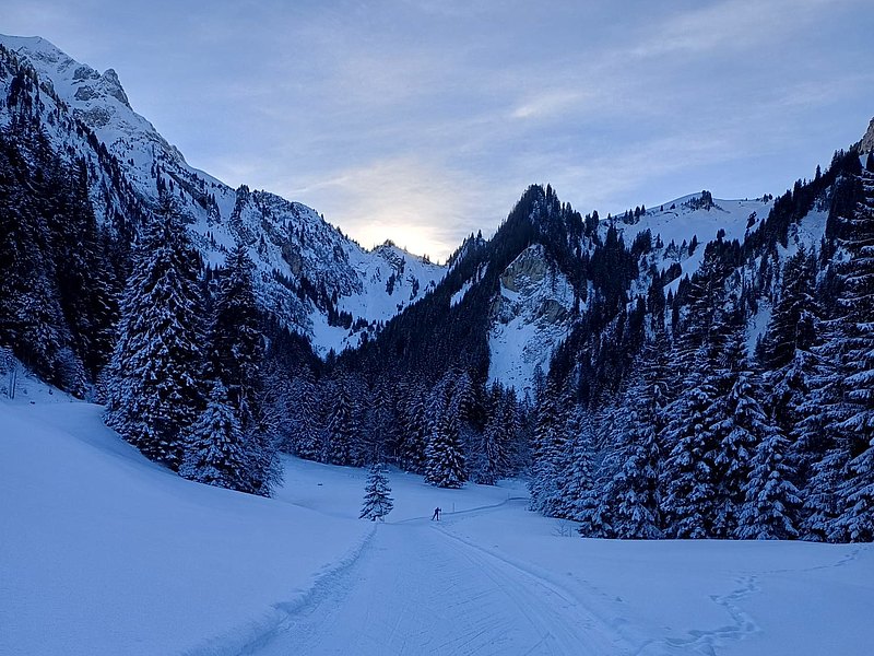 Und der Zauber beginnt... Pünktlich zu den Feiertagen fällt schweizweit Schnee, am 23. Dezemeber durften wir uns alle über eine weisse Schneepracht freuen. Bis ende Dezember bestimmte ein Hochdruckgebiet unser Wetter und Aeschi durfte endlich wieder verkünden: alle Wintersportanlagen geöffnet. Schnee- und Sonnenhungrige von nah und fern fanden sich zahlreich auf Aeschi's Skipisten, den Loipen, auf dem Schlittelweg und den Winterwanderwegen sowie auf den Schneeschuhtrails. Rege besucht wurde der stimmungsvolle Wiehnachtswäg mit seinem gemütlichen Beizli- zeitweise kamen die freiwilligen Helfer im Beizli der Arbeit kaum noch hinterher. Die Parkplatz-Mitarbeiter Res von Känel und André Gyger hatten alle Hände voll zu tun und gaben ihr Bestes, um allen Ankommenden ein Plätzli zuzuweisen. Gutes Essen, feine Getränke und beste Aussichten fanden Einheimische wie Gäste in der Skihütte, Skibar und Aprés Ski Bar und in der weiteren Gastronomie in Aeschi und Aeschiried.