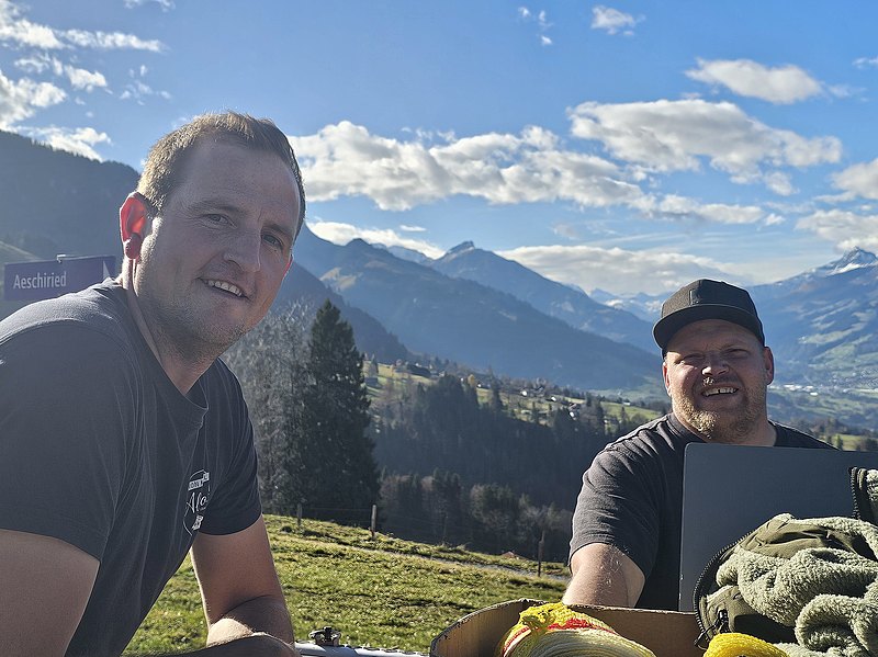Der Schlittelweg, das Gondeli, die Panoramaschaukel und das Panoramafenster sollen auf lange Sicht bestehen, für die Gäste besuchbar sein und später, wenn die beiden "nem mögä", in andere Hände gelangen. Aber jetzt ist es ein schöner Ausgleich und cooles Hobby. "Aber äs isch scho üses Ziel, dases das als i 50 Jahr nu git" meinen sie und lachen. Zwei Freunde, viele Ideen und Gemeinsamkeiten- beide hören gerne volkstümliche Musik, "öpä ä Jutz u Jodellieder u im Barwagä o gärn Aprés Ski Musig u rockigs". Zudem engagieren sich beide für den Verein Junge Aeschiner, welcher jährlich das Sommerfest auf die Beine stellt und so auch hier für den Dorfzusammenhalt sorgen "u das öpis giit ds Aeschi"